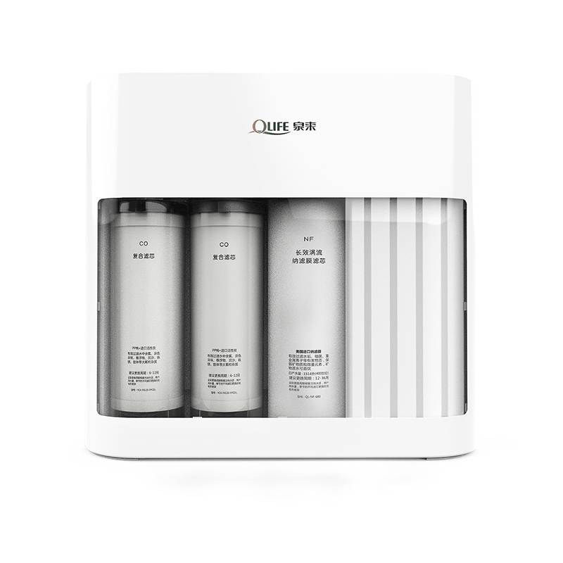 400加侖美國進口納濾膜、無桶設計、箱體機、五級過濾、LED屏、換芯提示、水質監測、節水5:1、免焊接集成水路板,濾芯:復合濾芯+復合濾芯+NF